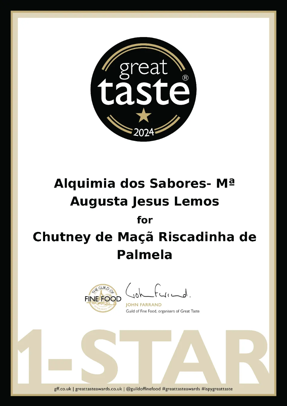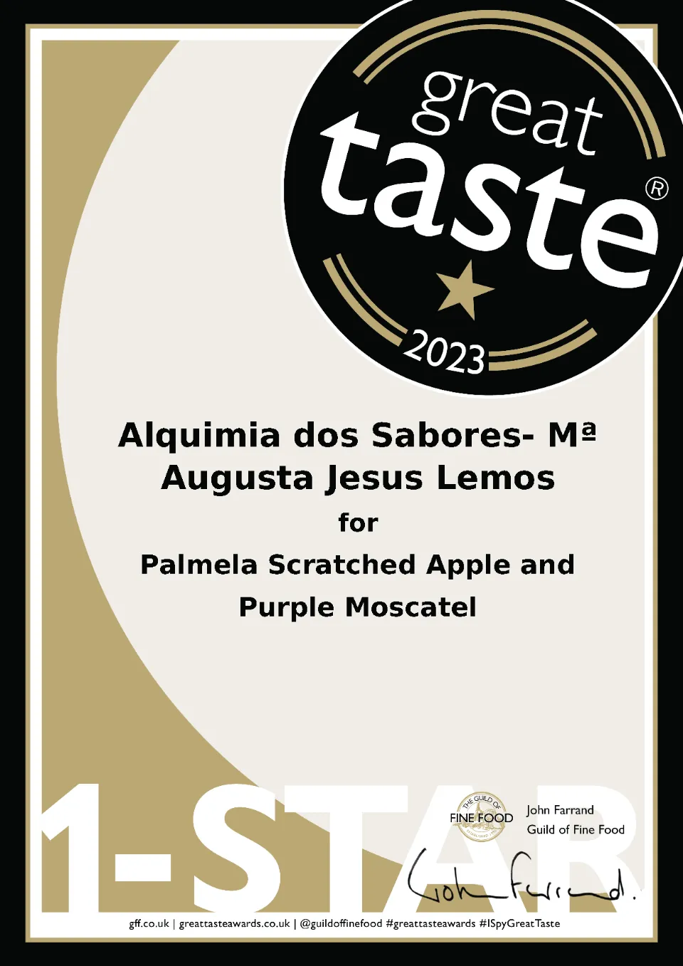 1 estrela na 1ª edição dos Great Taste Awards Portugal Certificado Great Taste